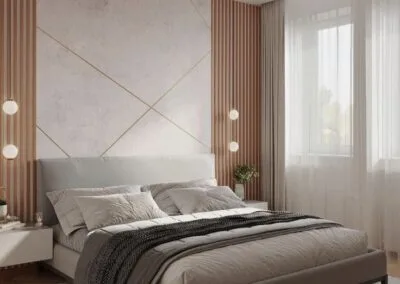 ✔ مناسب: غرف النوم – الجدران الجانبية