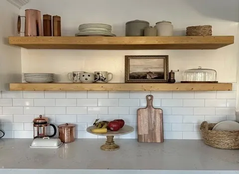 - في البداية، تساعد رفوف الخشب في استغلال المساحات بشكل ذكي، خاصة في المنازل الصغيرة.